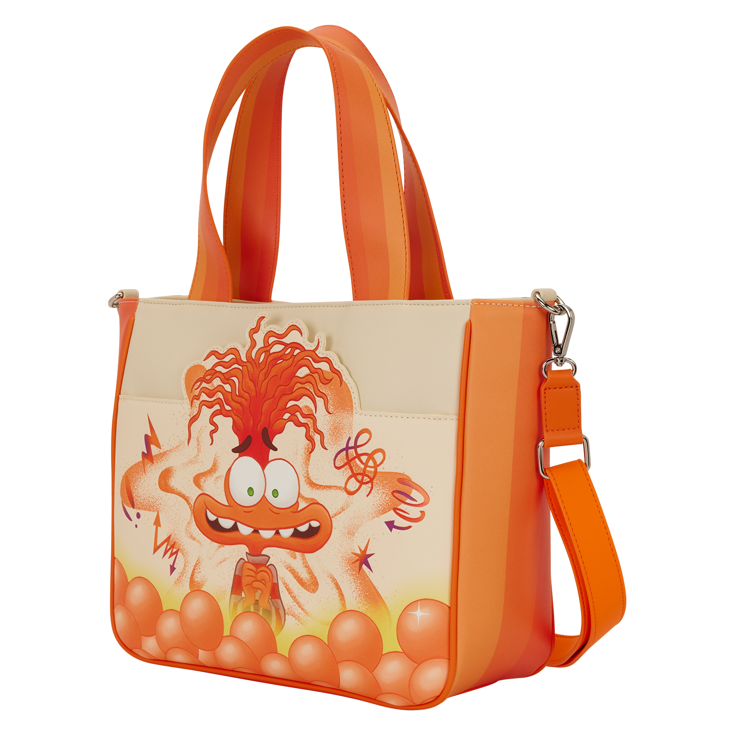 Don't feel anxious about your style! This tote bag is inspired by Anxiety from Disney and Pixar's Inside Out 2. You'll find her front and center on the bag, surrounded by orange memory spheres. Turn it around to find more orange memory spheres and Riley's anxious Sense of Self. Plus, there's a coin bag attached to the strap that features Riley's anxious Sense of Self on one side and Anxiety on the other. Put all your style fears aside with this tote bag inspired by Inside Out 2.