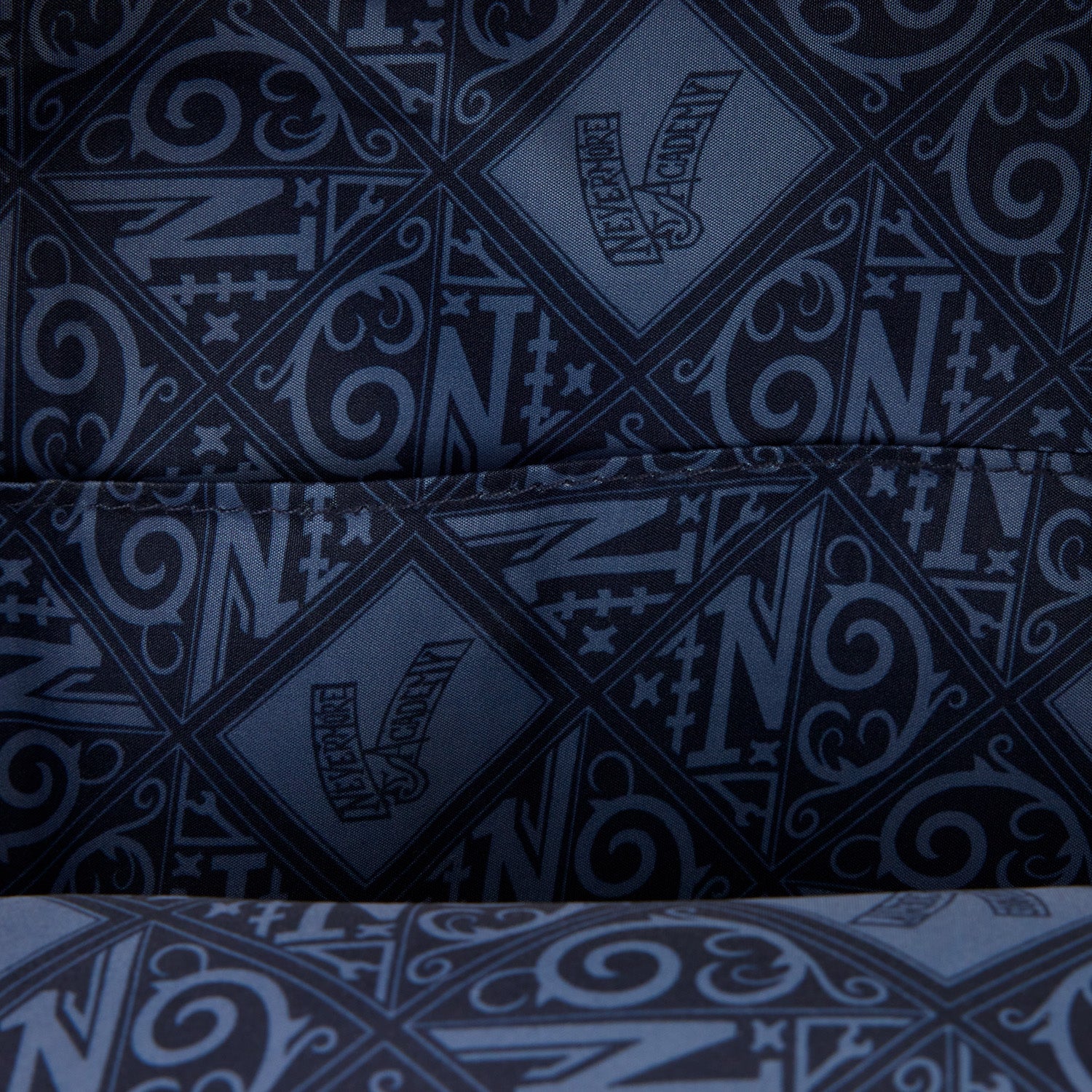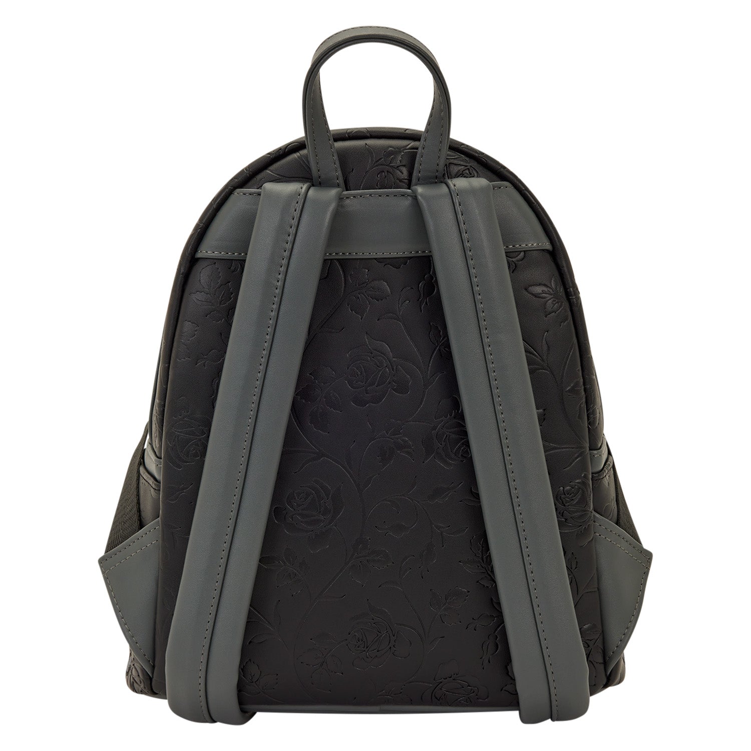 Welcome back to Nevermore Academy! This mini backpack features everyone's fav: Wednesday! She appears on the front heart-shaped pocket. All over the bag, she's surrounded by embossed and embroidered floral details. There are even 3D roses on the front! This bag makes it easy to show off one of your favorite characters every day!